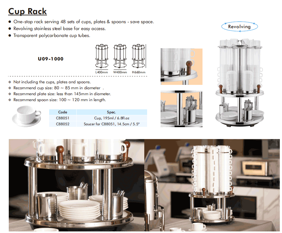1. One-stop-stativ, der serverer 48 sæt kopper, tallerkener og skeer - spar plads.