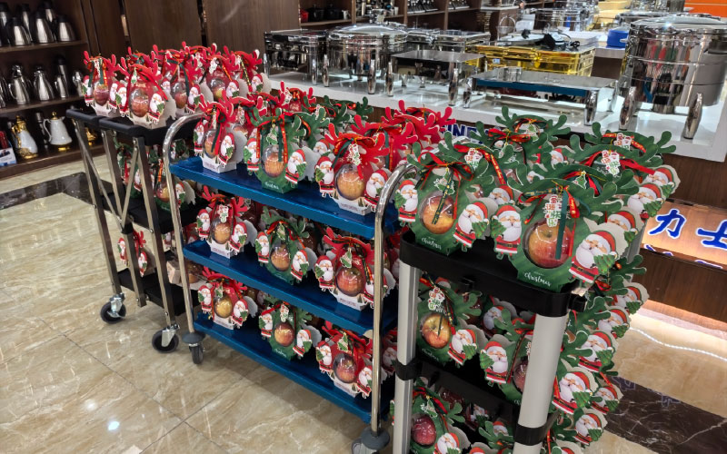 Sang en sang, "Vi ønsker dig en glædelig jul, vi ønsker dig en glædelig jul...", pakket dejligt og stort rødt æble sammen betydning fred, og så sendte vores julemand os to fredelige æbler per stav med dobbelt lykke, wow, så sød som en stor familie.